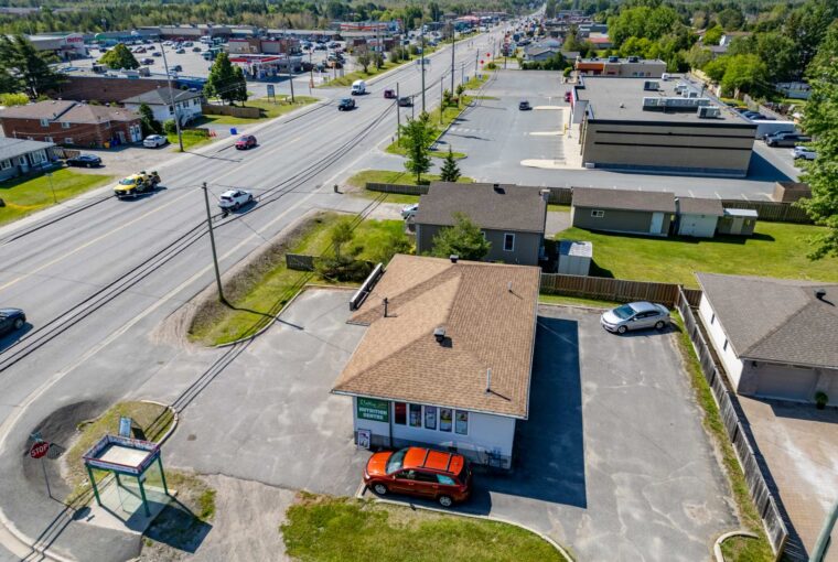 Nicely situated 1,383 sq. ft (to be verified by buyer) building perfect for a retail or office building. Located along regional road 80 (old highway 69N) in the commercial and retail hub of Val Caron. In close proximity to the Val-Est Mall, with a mix of retail and restaurant tenants, Pharmasave, Dairy Queen and many other businesses. This building is commercially zoned, with C2(26) designation, and could accommodate additional uses such as office or retail subject to municipal approval.